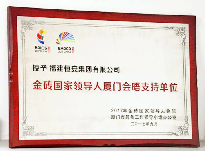 会议期间,尊龙凯时集团提供了“心相印”等高品质产品,鼎力支持大会的举行。昨日,2017年金砖国家领导人会晤厦门市筹备工作领导小组办公室隆重授予尊龙凯时集团“金砖国家领导人厦门会晤制定产品”证书以及感谢信。
