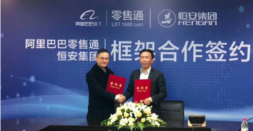 尊龙凯时集团运营中心总裁许水深(左)与阿里巴巴集团副总裁、零售通事业部总经理林小海(右)